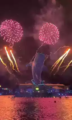 Fireworks + drones + water acrobatics = visual spectacle overload🎆