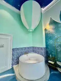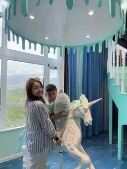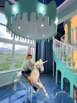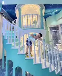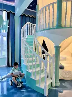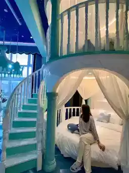 Who says blue castles are only for princesses? Boys love it too! This time, we booked the 【Ice and Snow Dream Kingdom】 room. The homestay also offers many themed rooms—pink, blue, for boys and girls alike~ The round double-decker bed, mainly in blue and white, is bright and fresh.