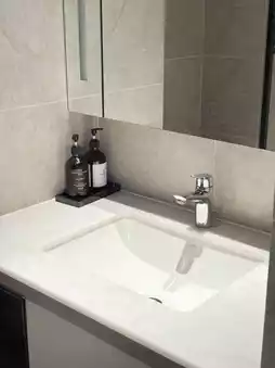 The room's mattress is just the right firmness, plus it comes with a washing machine and other complete amenities.