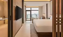 As a sister brand of Aman, this hotel took two years to prepare and is owned by Zhuhai Huafa Group, which is quite reliable. Located on the eastern side of Dong'ao Island, south of Paijiao Bay, the hotel is nestled between mountains and sea, offering daily sunrise views and overlooking the small islands in the Lingding Ocean, with a great environment.