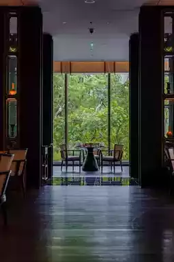 Every corner of the hotel reflects local cultural connections. The lobby follows Lingnan architectural symmetry, incorporating characteristic elements like decorative windows, antique tables, wood carvings, patterned tiles, and colored glass through contemporary interpretations of regional style.
