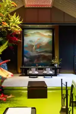 Amidst this verdant setting, the hotel offers just 147 rooms, including a selection of villas. The standard Mountain View Deluxe King Room starts from 70 square meters, exuding grandeur. The interior design blends Chinese aesthetics with Lingnan elements, showcasing local artistry like mother-of-pearl inlays and tin paintings alongside homely touches such as shoe-changing stools and walk-in closets. Staying here feels like residing in an erudite Lingnan mansion with impeccable taste.