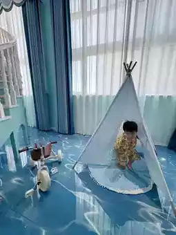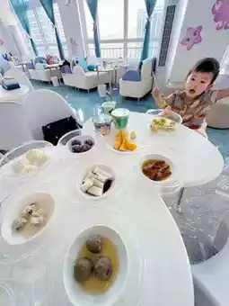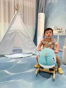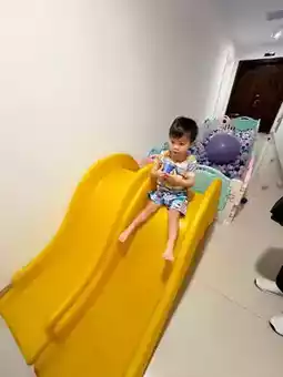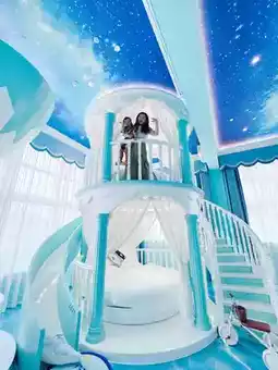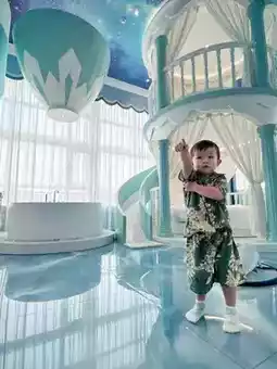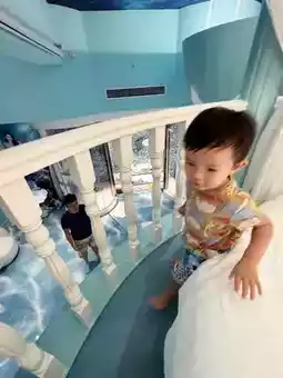 The moment we stepped onto the hotel floor, we were immersed in a strong oceanic vibe 🌊. When Lisboy opened the door to our room, he was in awe—so spacious, so beautiful, and so dreamy! ✨ The indoor slide 🛝 in the room was a big hit, along with the bicycles and rocking animals. Both adults and kids had a blast sliding down 🛝.