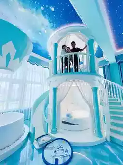The ice-and-snow-themed design of the room was incredibly captivating ❄️—perfect for taking photos 📸. The room was spacious 🏠, fully equipped ⚡, and featured a smart system 📱. You could control the lights 💡, air conditioning ❄️, and even order daily necessities via your phone, which were then delivered by a robot 🤖. Super convenient!