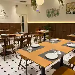 The restaurant has a very comfortable environment with simple decor and spacious seating.