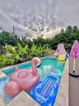 ◦ Day 1: Check-in in the morning → Enjoy a farmhouse lunch (try the yellow catfish tofu soup) → Afternoon shrimp fishing + mini train ride → Evening pool time → Nighttime BBQ + stargazing.