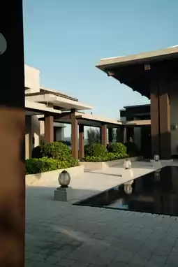 You simply must visit Dong'ao Island—bask in the gentle sea breeze, discover the hidden gem of Ahn Luh Resort nestled between mountains and ocean, and begin an utterly romantic island getaway. From the moment you step into the resort, it feels like stumbling into a poetic realm of Eastern aesthetics. The circular sky and square earth water terrace, shimmering with ripples, embody the philosophy of "the highest virtue is like water," while the guardian stone lions at the entrance add an auspicious touch to the tranquility. Winding paths lead you through a landscape where Lingnan culture and island charm blend seamlessly, unfolding like a traditional Chinese scroll painting.