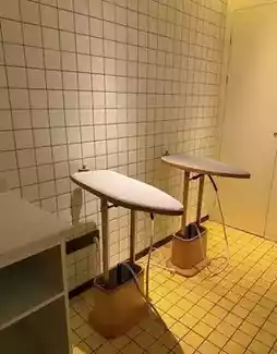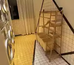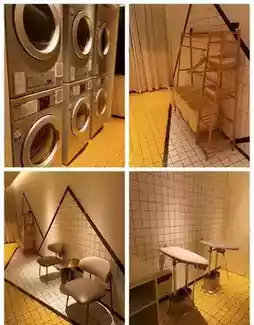 Laundry Room: Yellow floor tiles paired with natural wood drying racks, stacked Haier washing machines🛁 and ironing stations are all available. Even on the road, laundry is easy to manage—thoughtful and convenient~