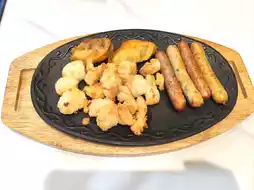 (The platter includes chicken wings, sausages, and chicken bites. Personally, I found the chicken wings and sausages very tasty, but the chicken bites lacked crispiness, slightly affecting the texture.)