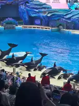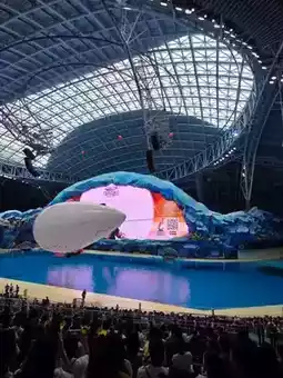The world's only indoor killer whale show: a giant screen pool with surround sound. Watch the 10-meter-long "Black and White Panda" soar through the air, its tail whipping and splashing water soaking the first three rows (bring a raincoat and don't sit too close!). The show also features information about the orcas bred at Chimelong.