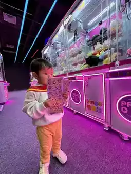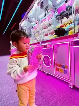 In addition to the amazing children's playground, every hotel room comes with 20 arcade tokens for us to use on claw machines or arcade games😝. Lisboy pretended to drive and managed to win a bunch of stickers as his prizes🌟🤭. There's also a 3D gallery and a straw art exhibition hall for everyone to explore😍.