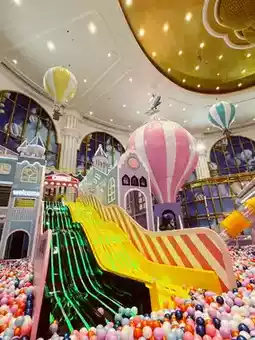 When you visit here, you absolutely have to explore the hotel's massive hot air balloon-themed children's playground🛝😍. The ball pit is astonishingly huge🎉, and there's even a high-altitude climbing rope net experience that spans two stories! Lisba took on the challenge, and there are also various gigantic slides🛝, an ocean ball pool, trampolines, and a range of other play facilities. It's a place where both adults and kids can have fun all day long🤪.