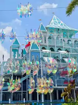 Blue giant tower, beautiful day and night! Inside is a winding maze, climb to the top for a panoramic view of the park