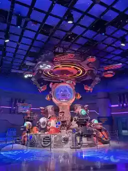 Large spaceship murals and space robots - must-see photo spots, colorful and eye-catching.