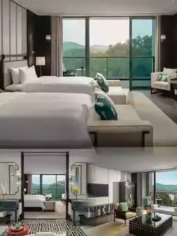 The hotel just opened, and not all rooms are completed yet, but there are many options: the standard mountain view rooms are already spacious, and the villas all have private courtyards.🌻 Many villas with private pools are still under construction.