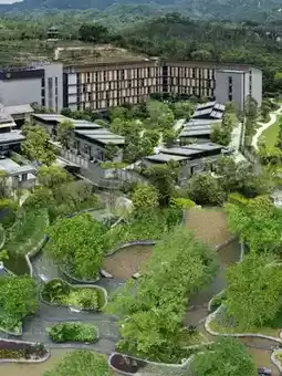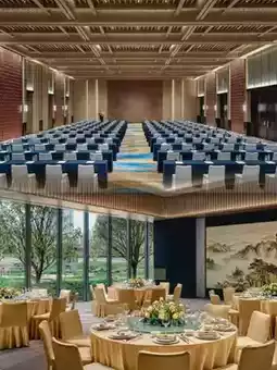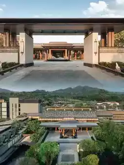 The hotel is located at the foot of Phoenix Mountain🌳, with Xiangshan Lake in front and lush tea hills behind. Covering more than 70,000 square meters, it only has 147 rooms and villas, which is quite spacious.