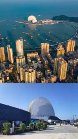 🌊 The starting point of your journey is the Zhuhai Opera House, a striking landmark with a large shell-shaped architecture located on Wild Beaver Island. The building is designed to blend in with the surrounding nature, including sunlight, sea breezes, and the evening skyline. Inside, the large theater hosts world-class performances and is a popular photo spot.