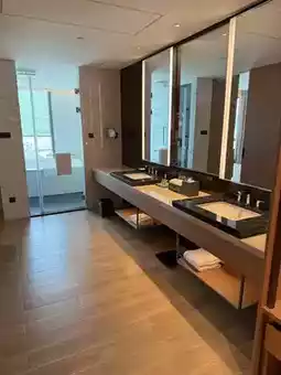 🌃 Speaking of hotel rooms, what a surprise! We stayed in the Premium Twin Room, which was super large with floor-to-ceiling glass windows and excellent views. The room is clean and tidy, there are 2 double beds in the room, the mattress is comfortable and comfortable to sleep on, there is also a large sofa by the window, you can enjoy the night view while having supper at night. Separate separate washrooms and bathrooms, the bathrooms are powerful, with a giant tub, two vanities, and an oversized cloakroom.