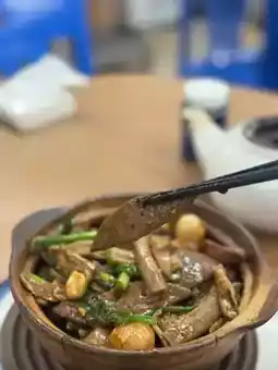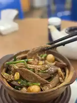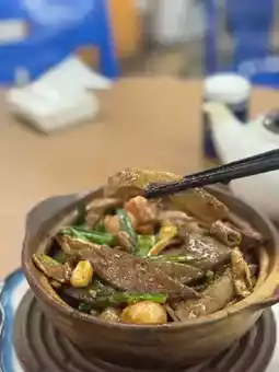 Jeje Pork Offal Hot Pot: Baked in a clay pot at high temperature, it's fragrant and rich in flavor. The abalone is chewy and tender, with the sweet flavor of the pork offal, and the high-temperature cooking enhances its crispness. The marinated pork offal is tender and juicy, absorbing the salty aroma of the sauce.