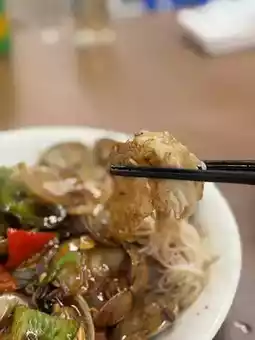 Stir-fried Clams with Rice Vermicelli: The stir-frying of fermented black beans unleashes their unique fermented bean aroma and salty flavor. This savory flavor is not overly salty, but rather rich and profound. The clams are plump and tender, with a refreshingly sweet, seawater-like umami flavor that cannot be replaced by any other seasoning. The clams' sweetness perfectly balances the saltiness of the fermented black beans and absorbs the aroma of the black bean peppers. Each piece is plump and full of flavor.