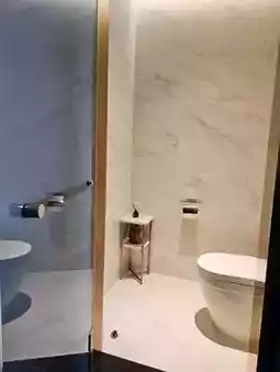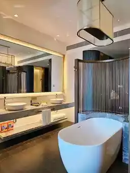▫️ This time stay in a premium sea view double room, room 45 square meters, there are two 1.2 meter beds, the room facilities are clean and well maintained; double washbasin, and the bathroom adopts dry and wet separation, feature bathtub seat in the middle of the bathroom.