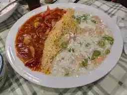 Tai Chi Yuanyang Rice $118 ~ A super large plate of Yuanyang rice, full of childhood memories. It's beautifully presented, with half being tomato 🍅🧅, onion, and shredded pork, and half being egg white and shrimp (fried rice base).