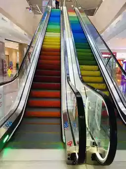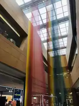 Wandering through the Port Plaza shopping mall, my eyes were instantly captivated by the breathtaking atrium—a dazzling ❤️🧡💛💚💙💜 space, a streamlined rainbow ribbon suspended in the dome, like a stream of rosy clouds. The sightseeing elevators, cascading through a rainbow of hues, ascended and descended, immersing the entire space in a dreamy shimmer of light and shadow. Even more surprising, the mall's walls cleverly incorporate the history of the Hong Kong-Zhuhai-Macao Bridge: faded blueprints, heavy welding tools, and precious footage of the undersea tunnel docking. These relics, bearing the memory of a century-old project, contrast beautifully with the neon lights of the modern mall, as if weaving the epic epic of a long, sea-crossing rainbow into the everyday scenery of this rainbow palace.