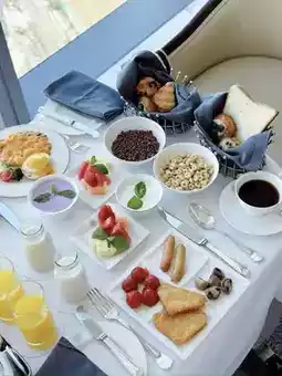 The next morning, we decided to dine in our room. The meal was ordinary, but the weather was beautiful and the view was stunning.