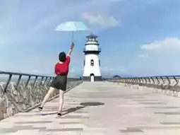 ✔️Pure white lighthouse + blue sea background for stunning photos