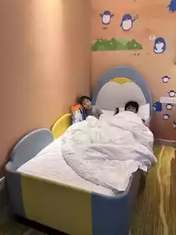 The atmosphere is lovely and the kids were thrilled. I booked a family room that included Ocean Kingdom admission, breakfast, and a dinner buffet. We ate next to a glass penguin tank.