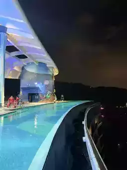 Upstairs, there's an infinity pool with city/sea views and a relaxing area. You can also watch the fireworks at Ocean Kingdom.