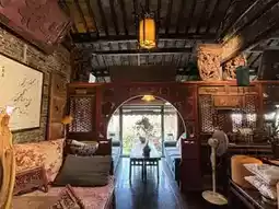 Near the bridge, I visited a teahouse with a strong presence called Nanshxiang Pavilion. The interior features wonderful retro Chinese-style decor and offers various types of seating.