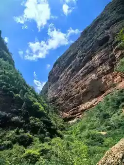 Red Cliff Valley: Located 5 kilometers west of Yeliguan Town, this distinctive ochre-colored world extends 20 kilometers deep. A creek runs through the valley floor, flanked by crimson sandstone formations sculpted into various intriguing shapes by wind and rain erosion.
