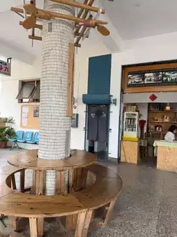 Entering the Taixi Bus Station Ice Cream Shop, a nostalgic atmosphere permeates the air: white tiles, wooden tables and chairs, and a large bird sculpture at the entrance transport you back to the small town of decades ago.