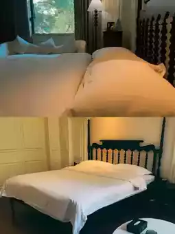 The French-style room I stayed in completely won my heart! The moment I opened the door, I held my breath—classic black-and-white tones exuded sophistication! The most stunning part? The walls are adorned with intricate carvings! Delicate floral patterns and lines spread across the white walls, miraculously blending retro, minimalist, and high-end aesthetics. With warm lighting, the atmosphere is simply divine! Every corner whispers "meticulous care."😍😍