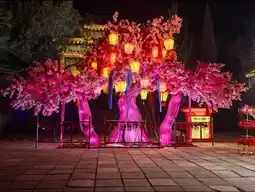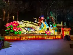 Walking to the lake, the lake is illuminated with colorful lanterns🌈. Lotus-shaped lanterns float on the water, with a faint light shining in the stamens, just like a smiling fairy. In the center of the lake, a giant dragon lantern is majestic, the dragon's beard is agile, the scales are shining brightly, as if the next second will break out of the water, straight up into the sky, people can't help but be impressed by its exquisite craftsmanship👏.
