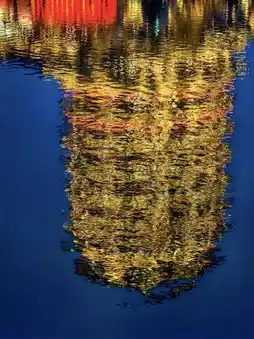 The bridge outside Haidai Tower is an excellent viewing spot, offering a wider perspective to capture the entire illuminated building.
