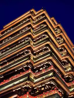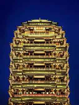 Haidai Tower Zhongshuge is located in Qisheng Lake Park, Zhangdian District, Zibo City. Its dazzling night view has earned it the title of "China's most beautiful bookstore" among netizens. The entire building is designed in the Han Dynasty style.