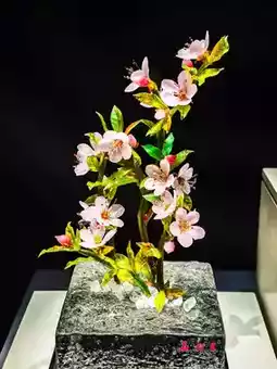 January's camellias bloom in full, February's winter jasmine begins to open, March's peach blossoms redden for ten miles… Here, the glass lampwork *Twelve Flower Deities* follows the four seasons, capturing time in its vibrant colors and captivating us with its beauty.