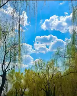 Strolling along the lakeshore, I'm surrounded by weeping willows, their slender branches dipping into the water, swaying gently in the breeze, as if whispering to the lake. In the flowerbeds along the bank, colorful blossoms compete for attention, red like fire, pink like clouds, and white like snow. The rich fragrance attracts countless bees and butterflies, busily flitting among the flowers, adding a touch of vitality and vibrancy to the tranquil Daming Lake.