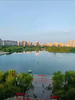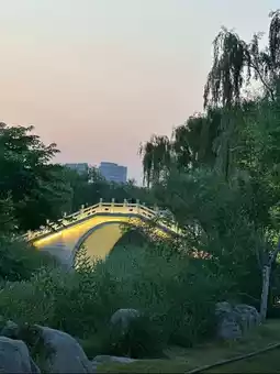 At dusk, lanterns flicker to life like stars scattered on the water. The evening breeze carries the scent of aquatic grass, brushing past benches where murmurs soften through the lake's filter. Distant skyscrapers blur into silhouettes, making the lake glow clearer—a jade polished by time, resting serene at the city's heart.