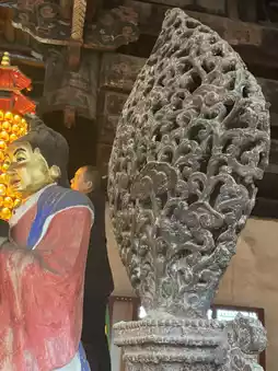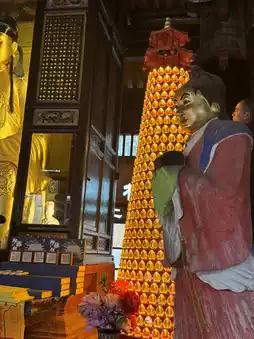 The Guixiang Hall is named after the ancient osmanthus tree planted in front of the hall. During flowering season, the fragrance fills the courtyard, wafting on the wind and blending with the lingering Buddhist incense within the hall, creating a uniquely elegant atmosphere. Inside the hall, the statue of the Bodhisattva, with its benevolent and auspicious features, complements the sweet fragrance of the osmanthus, creating a tranquil and peaceful atmosphere.