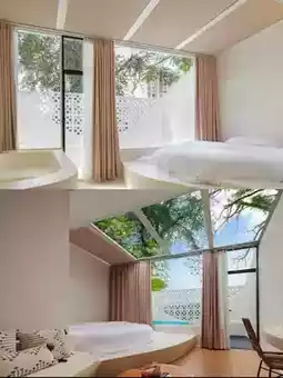 The large glass window lets the sunlight in, so you can enjoy the sunshine in the room. It's so comfortable!