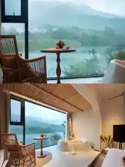 🌳 The natural minimalist aesthetic of the exterior design captivated me from the moment I approached. The homestay is built on the banks of Xiaodongjiang Lake, facing the green mountains in the distance. The morning sunlight shimmers on the lake's surface, creating a breathtakingly beautiful scene. There are many attractions nearby. A 3-minute walk takes you to the Misty Xiaodongjiang, where you can embark on a magical journey. A 20-minute drive reveals the red cliffs of Gaoyiling and the clear waters of Bailang Xiaoerhai.