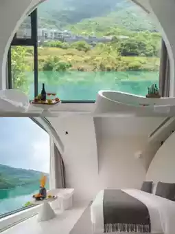 🛏 The room features a 270° panoramic floor-to-ceiling window, offering stunning lake and mountain views from the comfort of your bed. The lake-view bathtub adds a touch of luxury. Soaking in it at night melts away all fatigue. The XGIMI home theater system with Dolby Surround Sound provides a private cinema-like experience. Other amenities include a smart toilet, instant hot water, chilled Dongjiang fish in the mini-fridge, air conditioning, a silent fresh air system, and luxurious toiletries. The bedding is incredibly soft, guaranteeing a cloud-like sleeping experience!