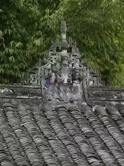Main Hall: A brick and wood structure, with its most striking feature being the ridge decoration. Two opposing porcelain dragons, approximately 0.3m in diameter, flank a hexagonal pagoda inlaid with blue and white porcelain. The pagoda's base resembles a lotus flower, featuring an exquisite and magnificent design.