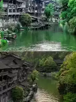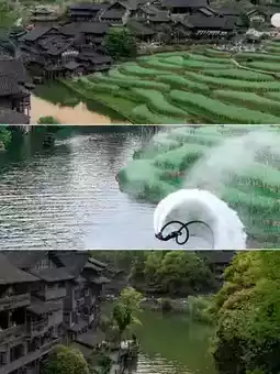 By day, it's an ink-wash painting scroll with swirling mist, where cobblestone paths and stilt houses reflect in the emerald river; by night, it transforms into a dazzling world of lights, with thousands of lanterns illuminating the valley, and even the breeze carries the gentle warmth of human life🎇