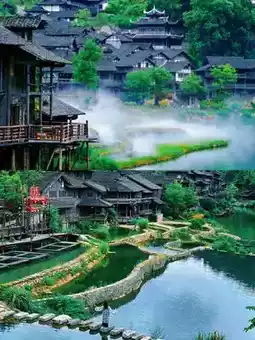 1️⃣ **Daytime**: Wear Miao ethnic clothing and stand on the wind-rain bridge with stilt houses and the emerald Wujiang River as backdrop - instant ethnic masterpiece!
