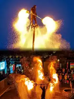 At night, there are fish lantern parades, riverside lantern blessings, iron flower shows 🔥, bonfire parties, fire pot performances, and drone shows, all worth seeing