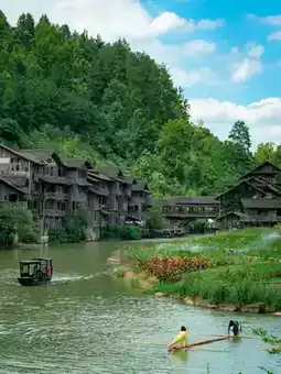 Pause to savor the slow pace of life here, carrying the warmth of intangible cultural heritage in your pocket. Or board a small boat and drift leisurely on the Yaluwang Covered Bridge waters. The river gently rocks the boat as green mountains recede on either side, with only the sounds of oars and wind in your ears.